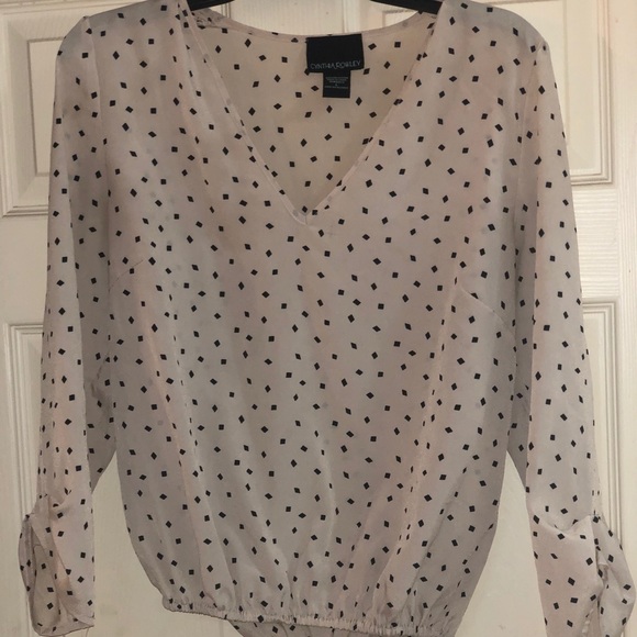 V-neck top with elastic waist (which is why I’m selling it as my new weight does not work well with elastic waistbands LOL)