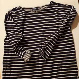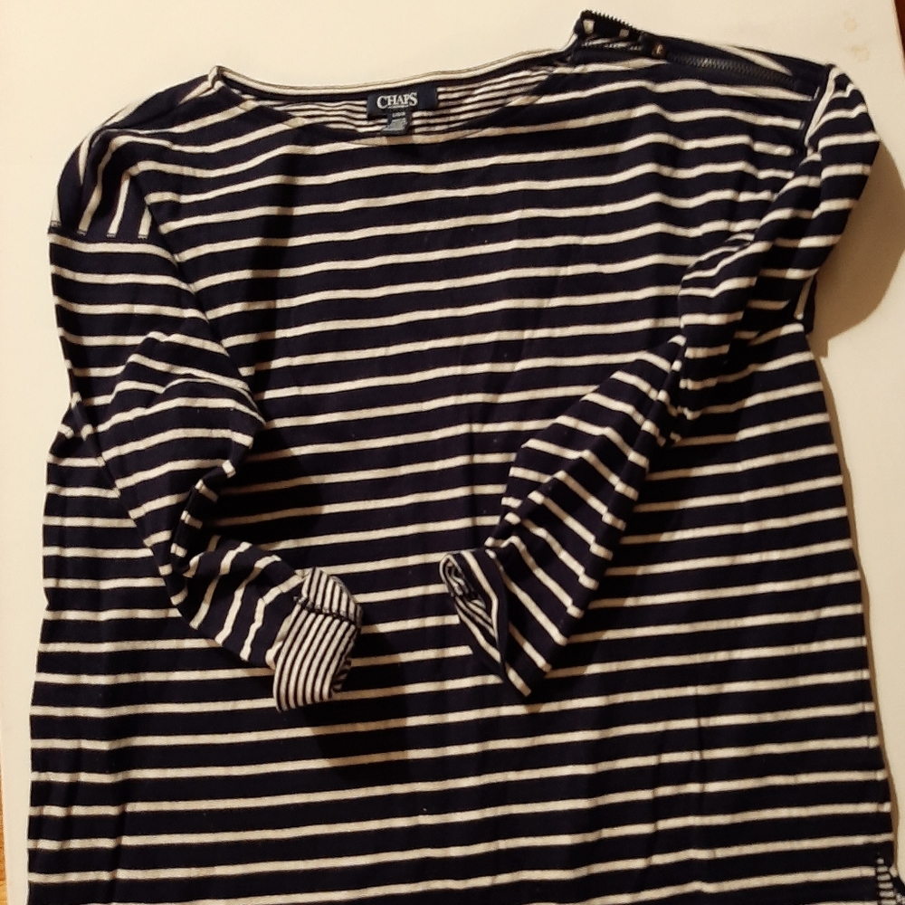 Crew neck with zipper on one shoulder cuffed sleeve
