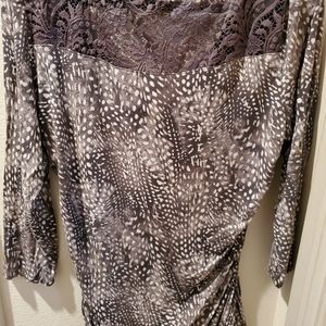 Blouse with lace overlay, and on back along neck. A flattering top. Only worn a few times