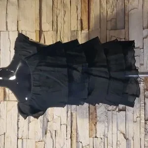 Says XS, but can fit up to medium. No stretch except for elastic in shoulder area.