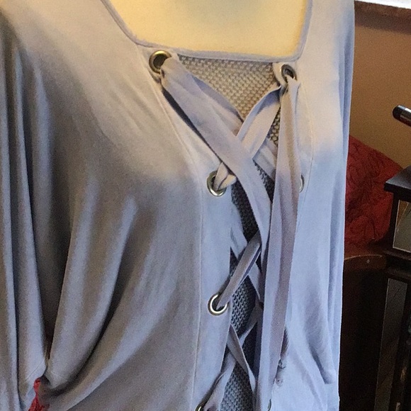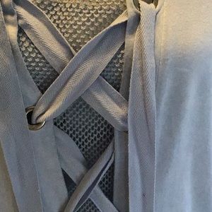 Camisole is a form fitting w spandex .top can be worn long or short as is bundles nice in back worn 1x , won’t last long make an offer it’s cute and comfy it’s an blossey but not oversized ties are think w a neat netting