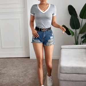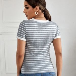 Striped V Neck Tee