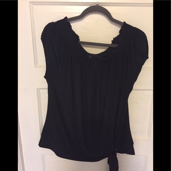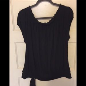 Black top, Loose flow gather tie bottom