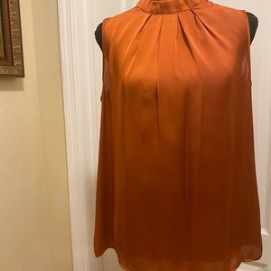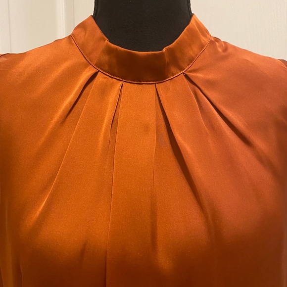 Shinny silky dress top. High neck with pleats.