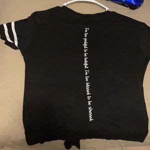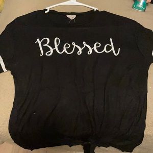 Front “blessed” back “ i’m too grateful to be hateful I’m too blessed to be stressed”