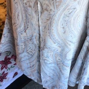 Bell sleeves, tie and slit in back. So many compliments, I wore w dress pants and baby blue jeans I listed for sale