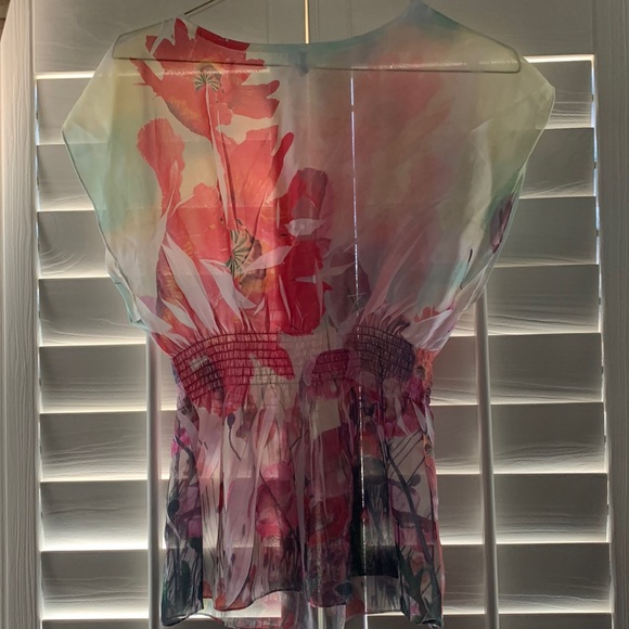 Sheer floral top with elastic waist