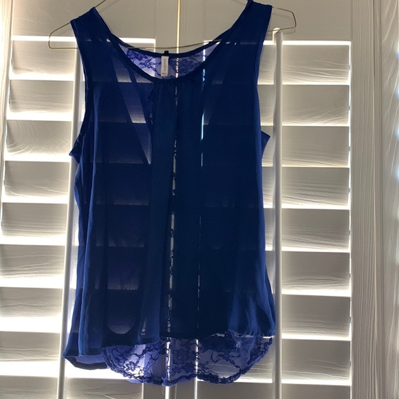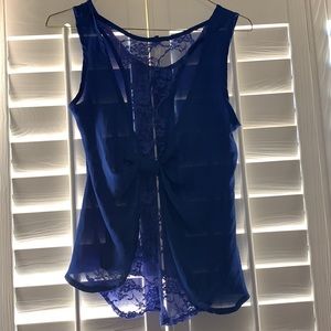 Blue sheer top with lace back