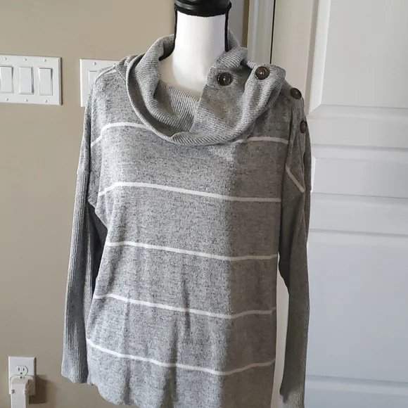 Grey and white button top