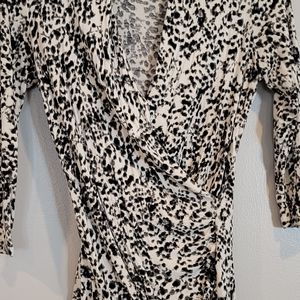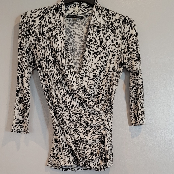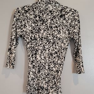 Long sleeve black and white animal print top