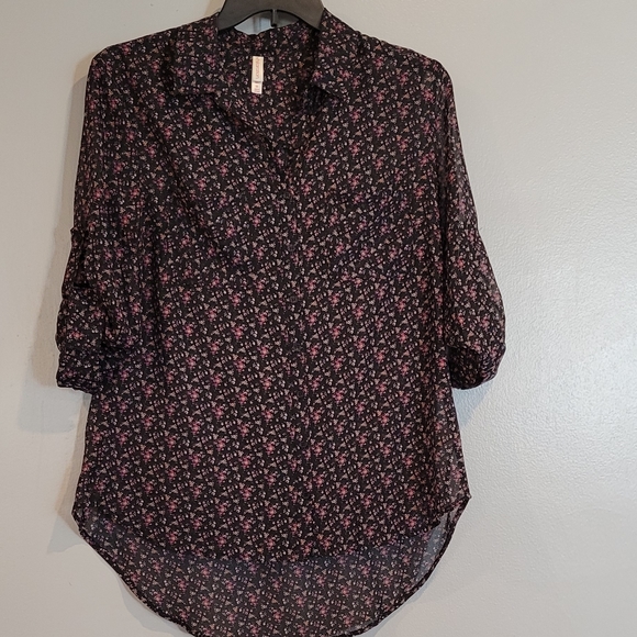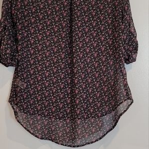 Sheer adjustable sleeve floral button down top