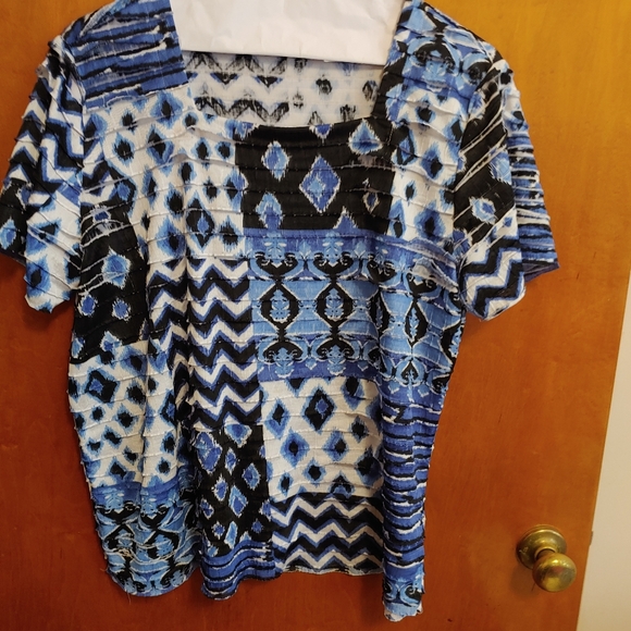 Blue/Black/White short sleeved top.