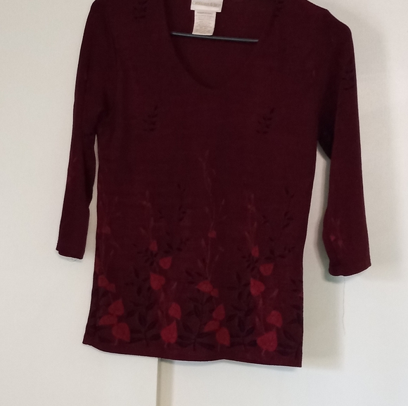 3/4 length sleeve top with leaf design at bottom guc from smoke free home