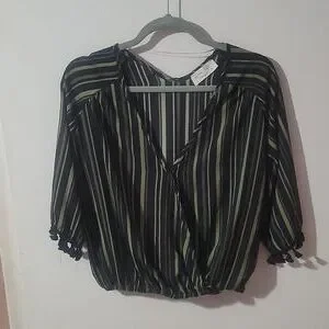 Black/Olive stripe Lavender Field blouse size medium