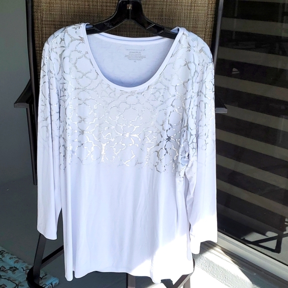 preowned great condition, stretchy. Sleeves are 22" armpit to armpit is 23" length 28".