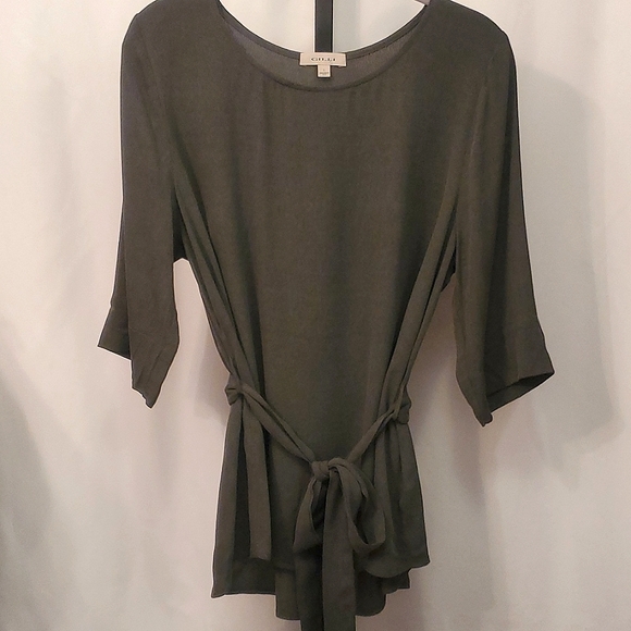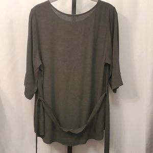 Top has 3/4 sleeves and a belt 55%Rayon 45%Viscose in EUC no stains, snags or holes.