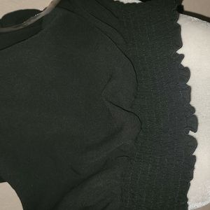 3/4 sleeve top bare shoulder like new only worn once color black with an elastic band at the bottom