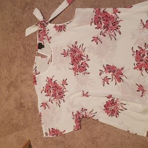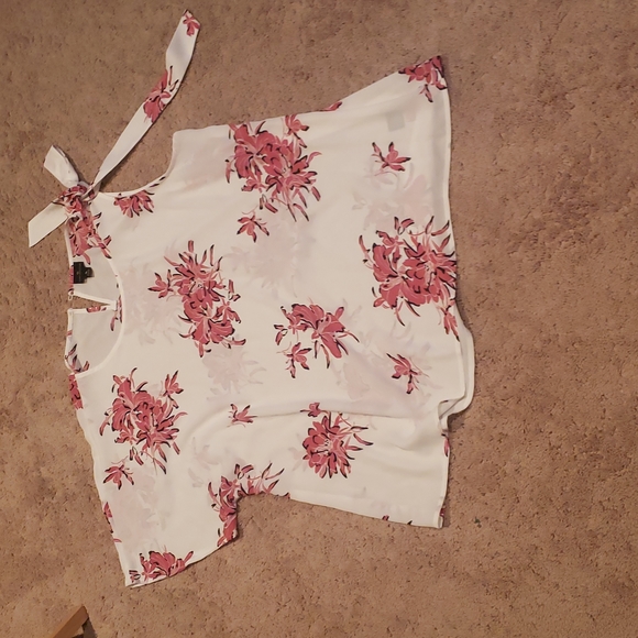 Worthington Size XL one side has sleeve and the other doesnt but just ties. Flowy top. Size XL