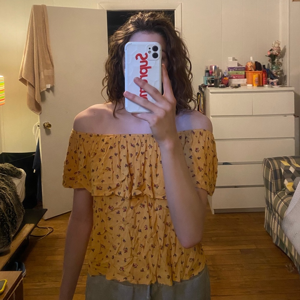 Off the shoulder top, it’s just wrinkled from being kept away