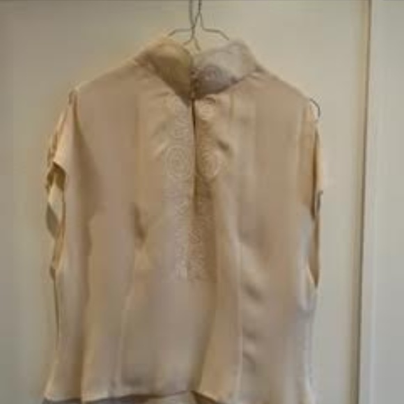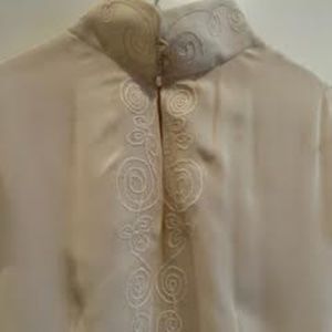 Open shoulder, side zipper, embroidered top.