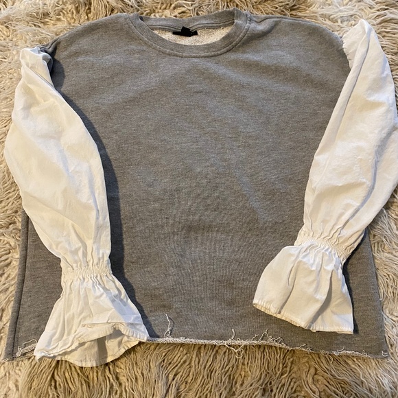 Top Shop Grey and white mixed light sweater top w/ peplum sleeves. Very unique top