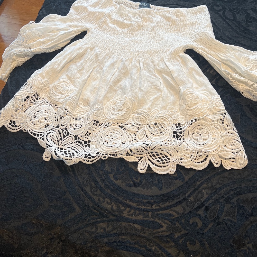 Flare white top (crochet detail) Fits like a large shirt