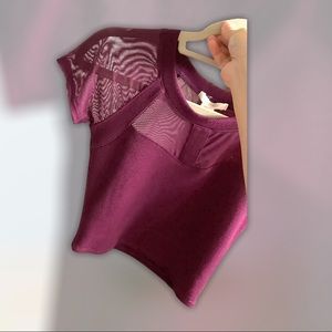 A cute maroon crop top. It is a little see through on the top. No tags, however, it’s never been worn.