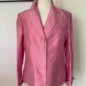 Shocking Pink 100% Shantung Silk Shell. Princess neckline, Side zip. 19” in length.