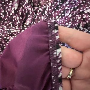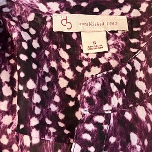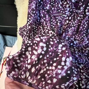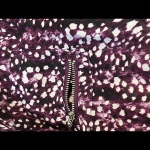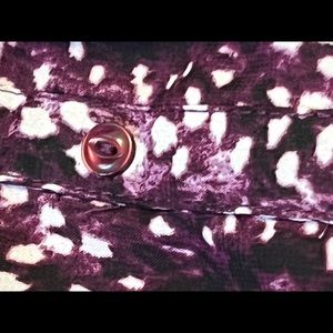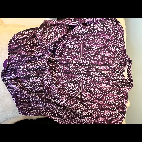 Tunic style with elastic band in the bottom. Two small zipper pockets, fully lined. Puffy sleeves. No signs of wear, faux buttons down the middle