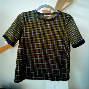 Printed light wool tshirt from ZARA. Perfect for formal settings/work. Pair with suit paints and pointy heals for the perfect posh look.