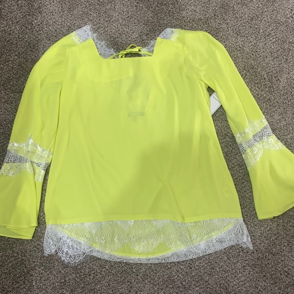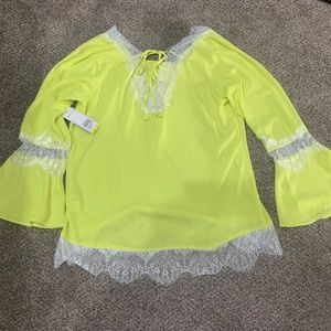 Chartreuse blouse with beautiful lace details! It's a medium but definitely runs a tad big.