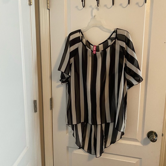 Black and white stripe, hi low, with Tuxedo style back. Just waiting on you to style it 👌🏾