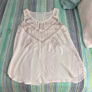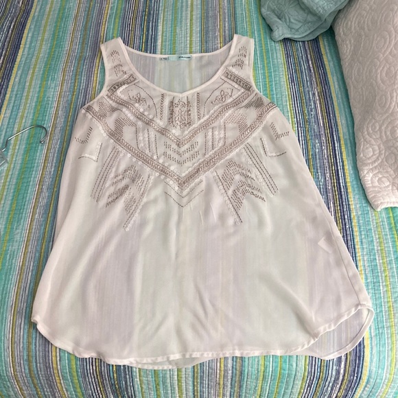 Cute cream top with gold design and white sequence. See through so may want to wear a tank underneath.