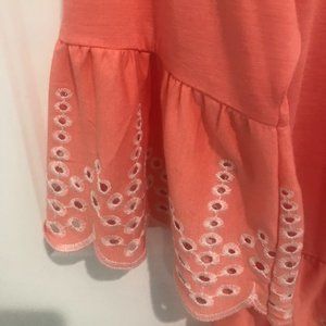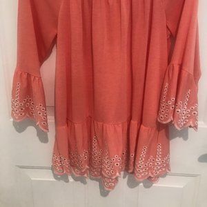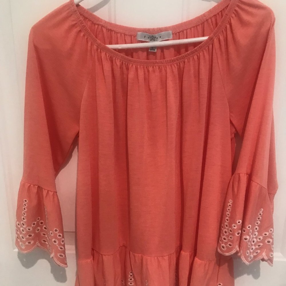 Top with 3/4 bell sleeve. Peplum bottom. Eyelet white embroidery. Like new.