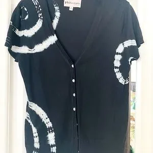 Beautiful black / white rye dye and sequin short sleeve knit cardigan