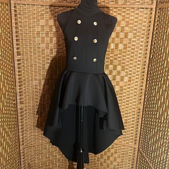 High low sleeveless top that zips in the back. Has good buttons in the front. Can pair with some jeans.