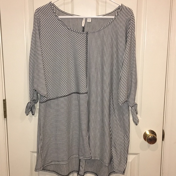 Black & white stripes. Scoopneck. Cold-shoulder & cut-outs at elbow length knot detail. Excellent condition.