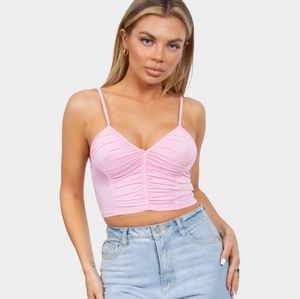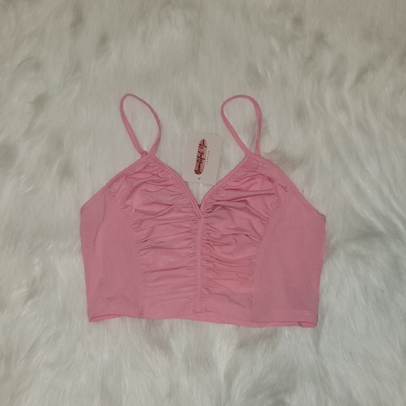 Pink crop top.
