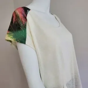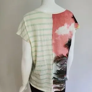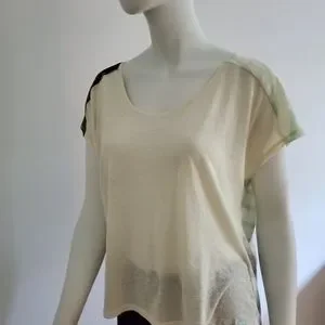 Lightweight casual top with simple front and great back interest. 16" across back shoulders. 23" long, slightly shorter in front.