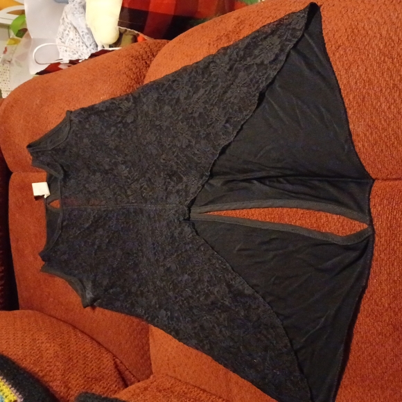 black high low top with the front being all lace, and the back split for comfortable moving and key hole button back. back solid black. worn once.