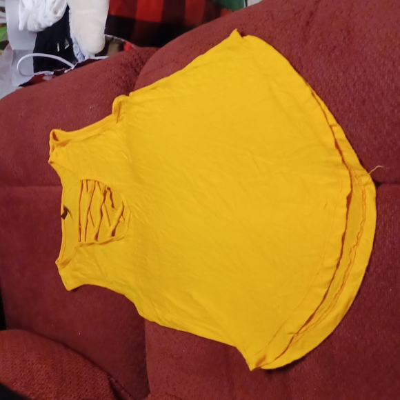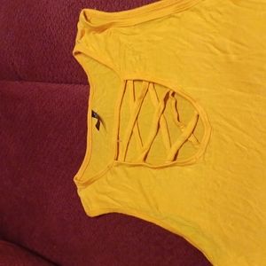 yellow gold no sleeve round hen criss cross front top