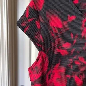Retro style ribbed material top is so adorable. The cap sleeves and black zipper in back are classy details. Very soft and stretchy and small slits on side add for movement and detail