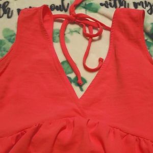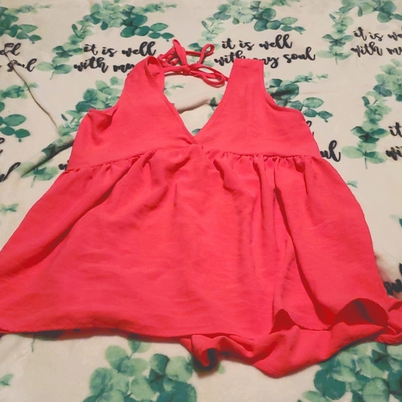 hot pink top with tying detail in back, v-neck, flowy. beautiful beautiful color. never worn size small