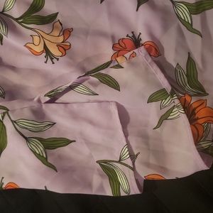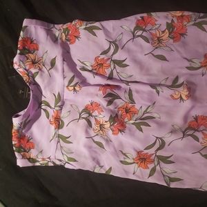 Beautiful Worthington tunic-styled top with side vents and a chest pocket. 100% polyester. Flowy. Shoulder to hem is approximately 25" in the front and 26 1/2" in the back. Brand new, never worn. Roomy size small. Lavender background with tangerine, orange, mustard, green and white flowers.