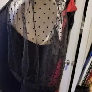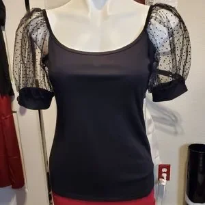Women's Retro Square Neck Tops Slim Fit Semi Sheer puff Mesh Sleeve Top C1