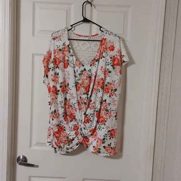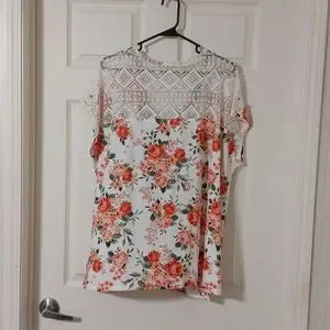 Floral top with see threw lace in the back.
