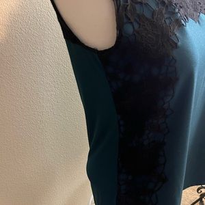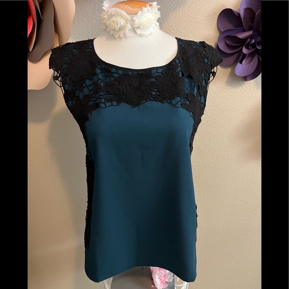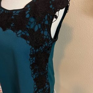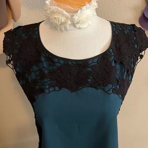 Unique and stylish green top with beautiful black crocheted design 🌸