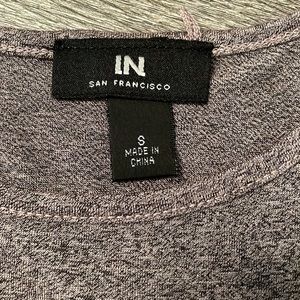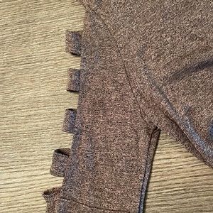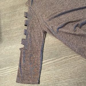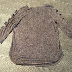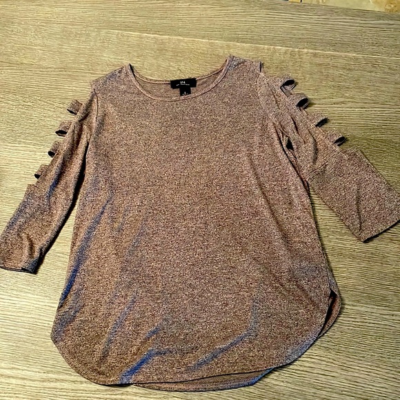 3/4 sleeve top. Sleeves are open at top with 4 pieces of material in that area (shown in pics). Very cute. Color is a pink and black mixed. Like new. Smoke free, pet free home