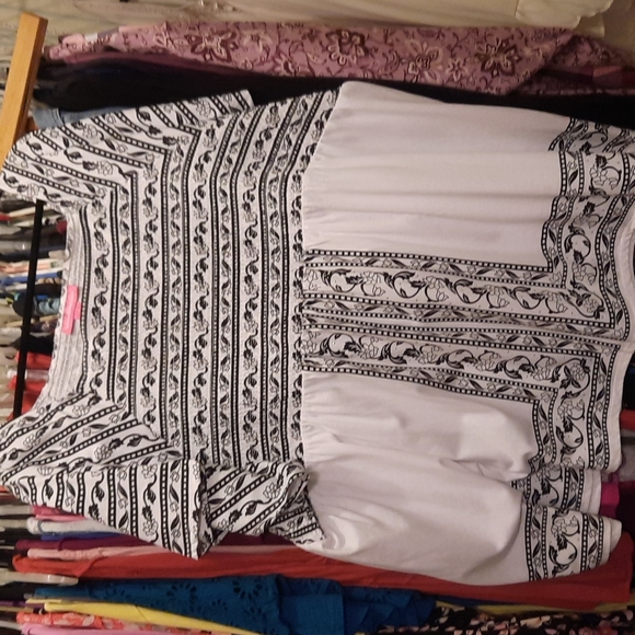 Beautiful brand new black n white baby doll top with square neckline & some bling. Where to the office, on that special date, maybe to church or that informal spring wedding you've got coming up.