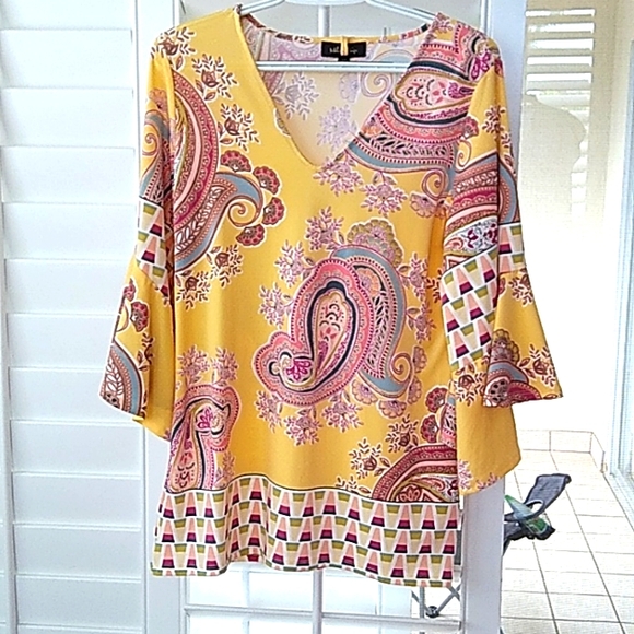 Beautiful paisley patterned top with fun, flirty sleeves.